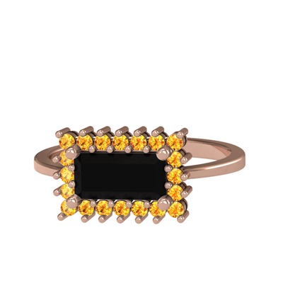 Siyah zirkon ve sitrin 18 ayar rose altın yüzük