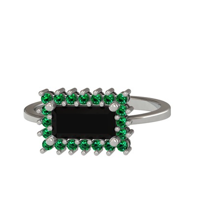 Siyah zirkon ve yeşil kuvars 925 ayar gümüş yüzük