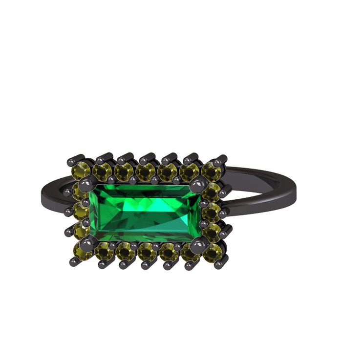 Yeşil kuvars ve peridot 925 ayar siyah rodyum kaplama gümüş yüzük