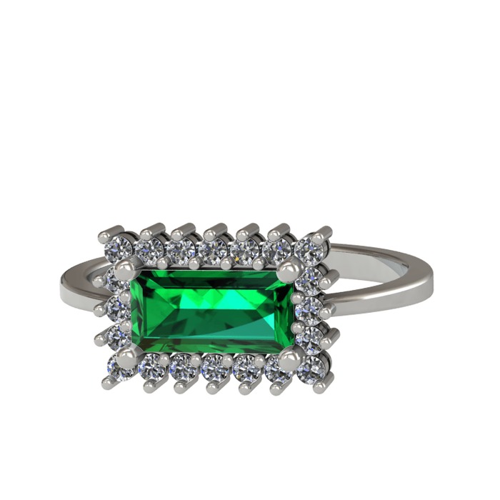 Yeşil kuvars ve pırlanta 18 ayar beyaz altın yüzük (0.4 karat)