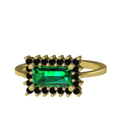 Yeşil kuvars ve siyah zirkon 925 ayar altın kaplama gümüş yüzük