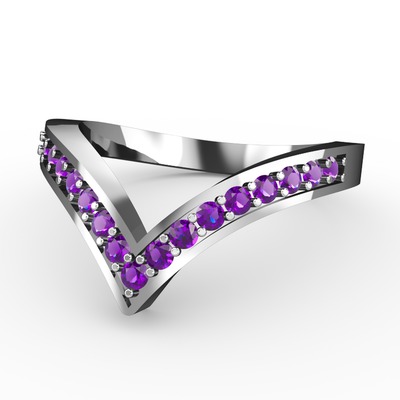 Ametist 14 ayar beyaz altın yüzük