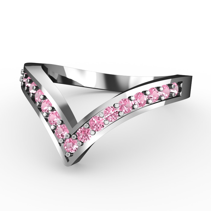 Pembe kuvars 18 ayar beyaz altın yüzük