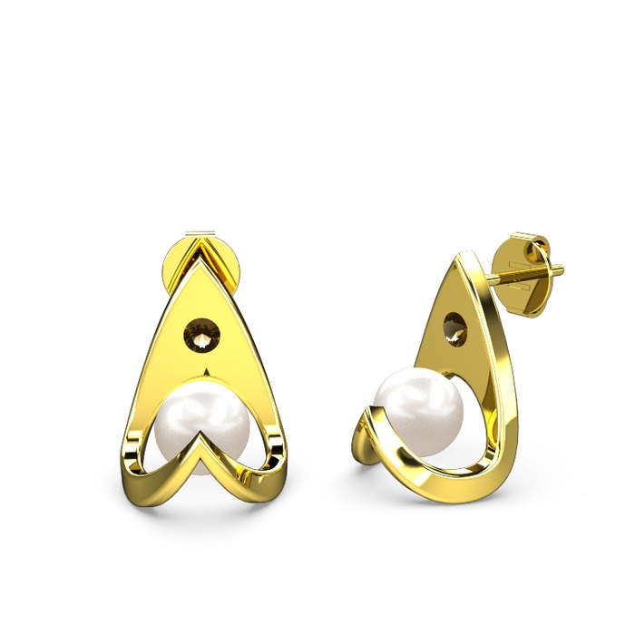 Inci ve dumanlı kuvars 18 ayar altın küpe