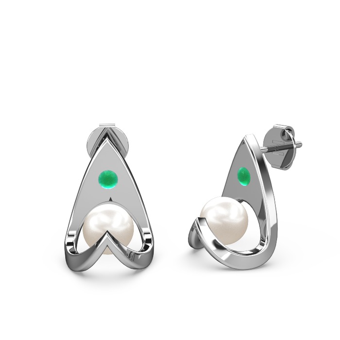 Inci ve kök zümrüt 18 ayar beyaz altın küpe