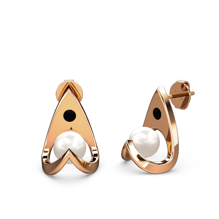 Inci ve siyah zirkon 18 ayar rose altın küpe