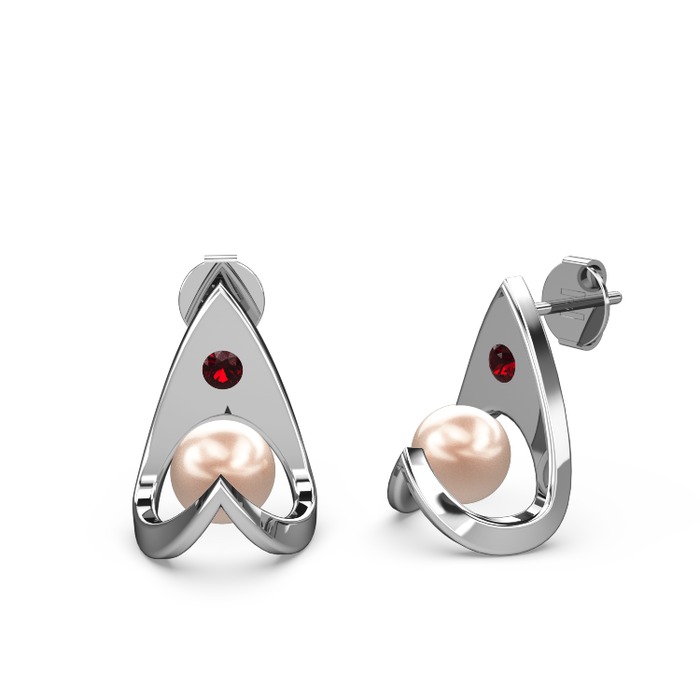 Pembe inci ve garnet 8 ayar beyaz altın küpe