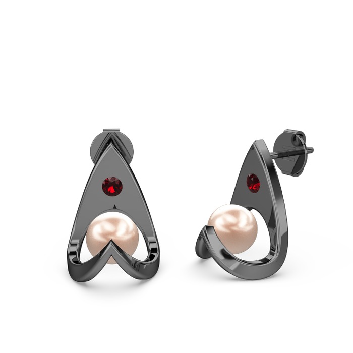 Pembe inci ve garnet 925 ayar siyah rodyum kaplama gümüş küpe