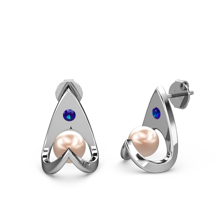 Pembe inci ve lab safir 925 ayar gümüş küpe