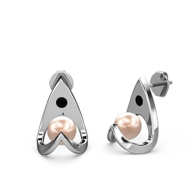 Pembe inci ve siyah zirkon 18 ayar beyaz altın küpe