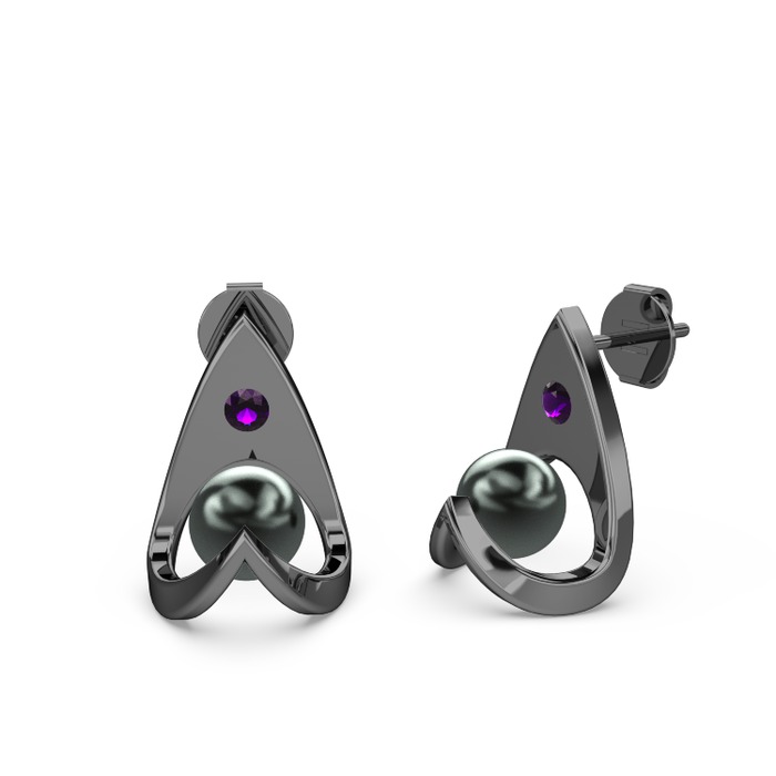 Siyah inci ve ametist 925 ayar siyah rodyum kaplama gümüş küpe