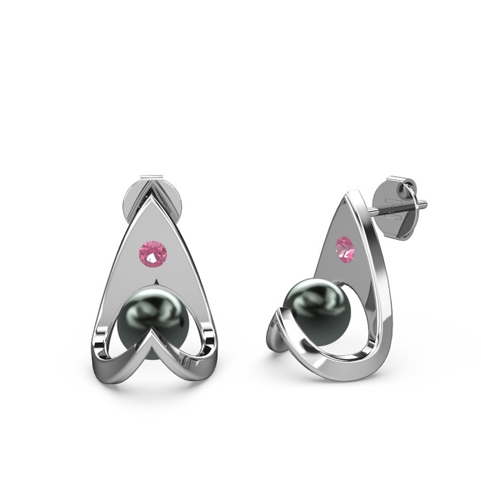 Siyah inci ve pembe kuvars 925 ayar gümüş küpe