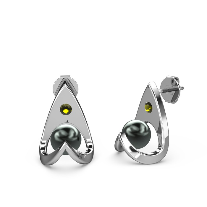 Siyah inci ve peridot 8 ayar beyaz altın küpe