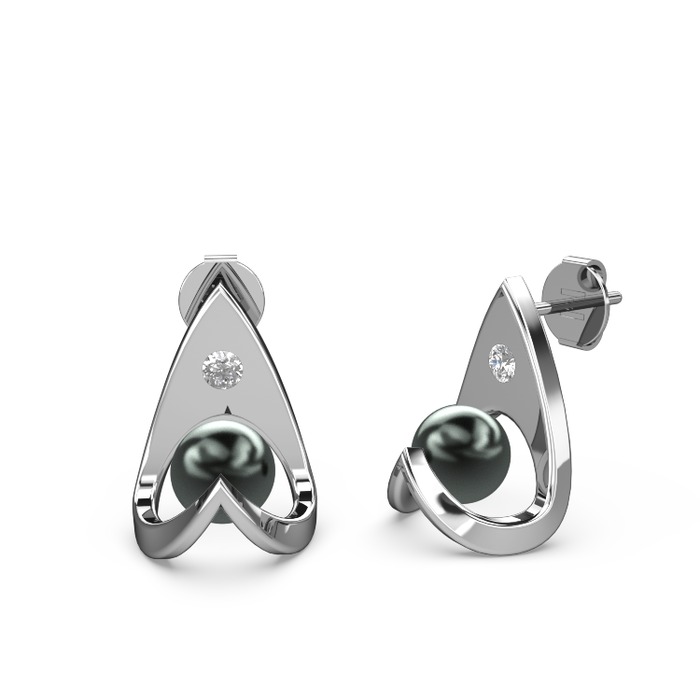 Siyah inci ve swarovski 925 ayar gümüş küpe
