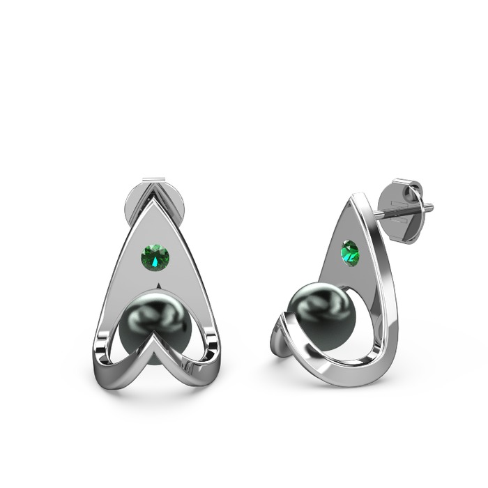 Siyah inci ve yeşil kuvars 925 ayar gümüş küpe