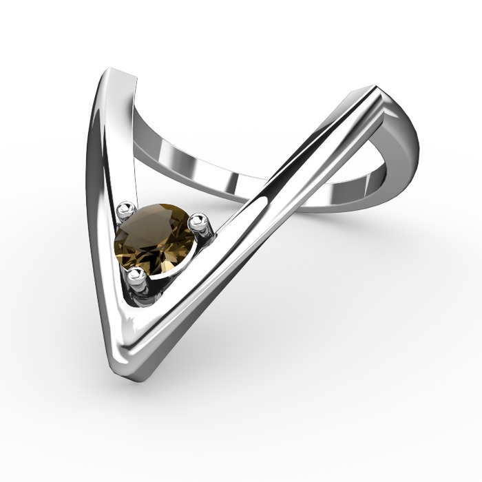 Dumanlı kuvars 18 ayar beyaz altın yüzük