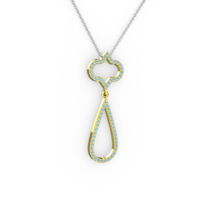 Akuamarin 14 ayar altın kolye (40 cm beyaz altın rolo zincir)