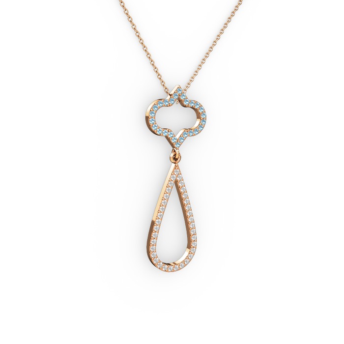 Akuamarin ve beyaz zirkon 18 ayar rose altın kolye (40 cm rose altın rolo zincir)