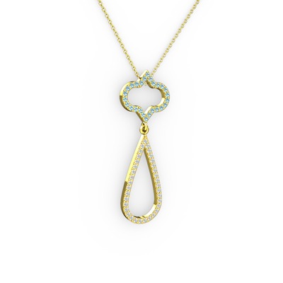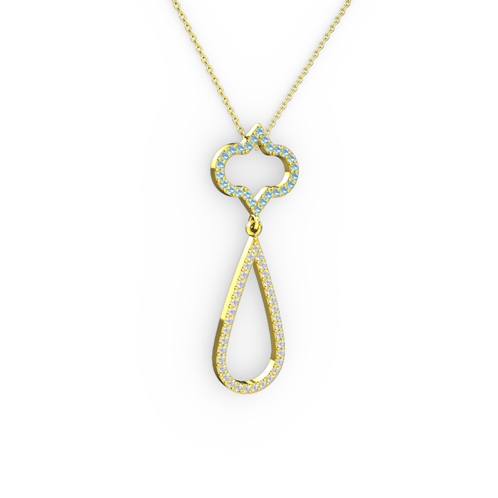 Akuamarin ve beyaz zirkon 8 ayar altın kolye (40 cm altın rolo zincir)