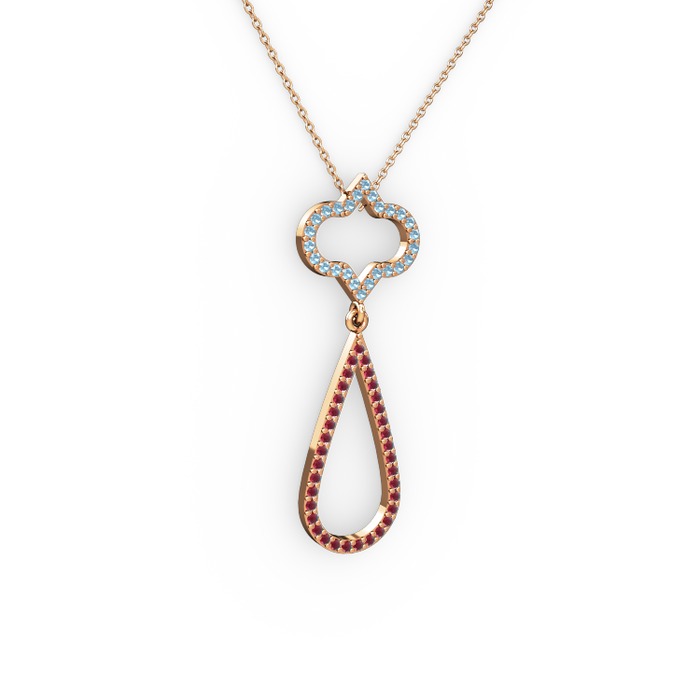Akuamarin ve kök yakut 18 ayar rose altın kolye (40 cm rose altın rolo zincir)