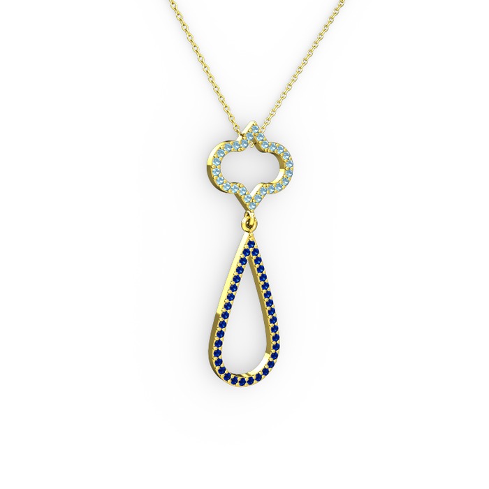 Akuamarin ve lab safir 925 ayar altın kaplama gümüş kolye (40 cm altın rolo zincir)