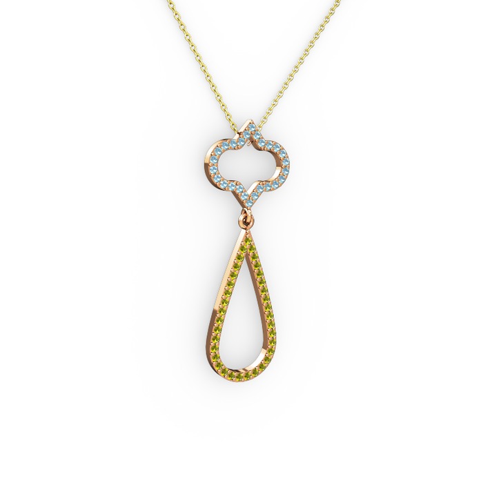 Akuamarin ve peridot 18 ayar rose altın kolye (40 cm altın rolo zincir)