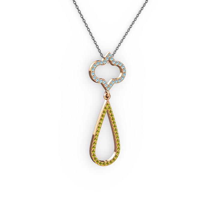 Akuamarin ve peridot 18 ayar rose altın kolye (40 cm gümüş rolo zincir)