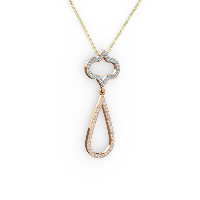 Akuamarin ve pırlanta 14 ayar rose altın kolye (0.324 karat, 40 cm gümüş rolo zincir)