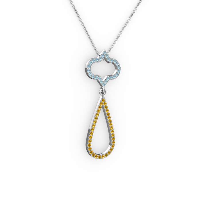 Akuamarin ve sitrin 14 ayar beyaz altın kolye (40 cm gümüş rolo zincir)
