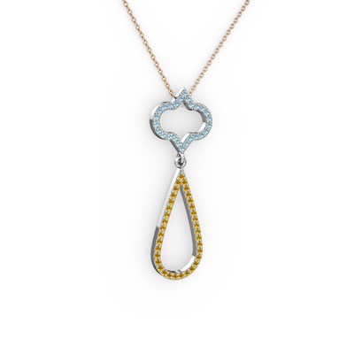 Akuamarin ve sitrin 14 ayar beyaz altın kolye (40 cm rose altın rolo zincir)