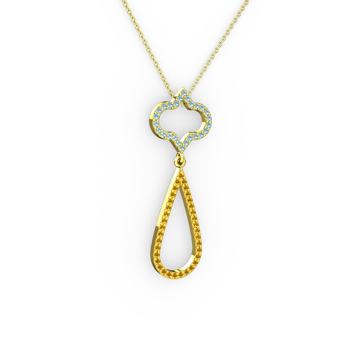 Akuamarin ve sitrin 8 ayar altın kolye (40 cm altın rolo zincir)