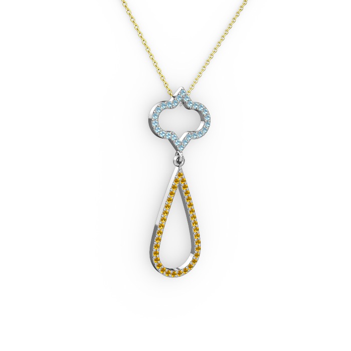 Akuamarin ve sitrin 925 ayar gümüş kolye (40 cm altın rolo zincir)