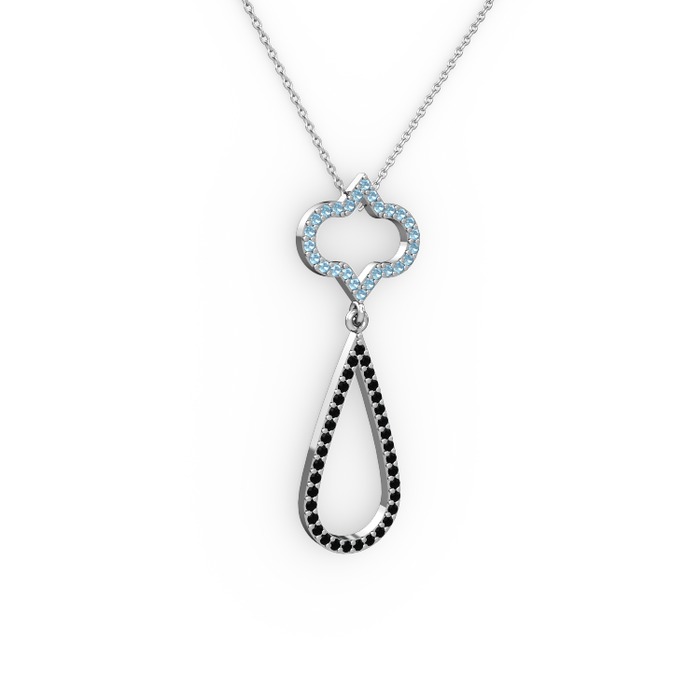 Akuamarin ve siyah zirkon 925 ayar gümüş kolye (40 cm beyaz altın rolo zincir)