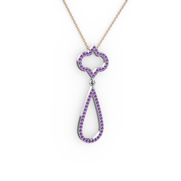 Ametist 18 ayar beyaz altın kolye (40 cm rose altın rolo zincir)