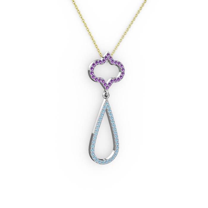 Ametist ve akuamarin 8 ayar beyaz altın kolye (40 cm altın rolo zincir)