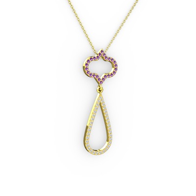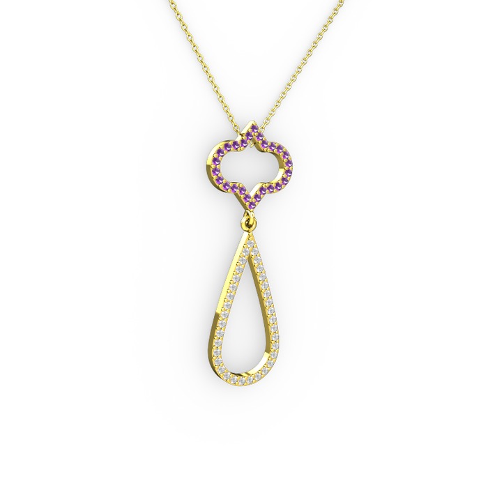 Ametist ve beyaz zirkon 18 ayar altın kolye (40 cm altın rolo zincir)
