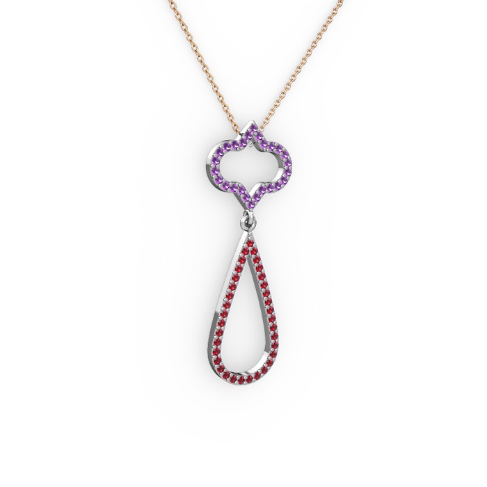 Ametist ve garnet 925 ayar gümüş kolye (40 cm rose altın rolo zincir)