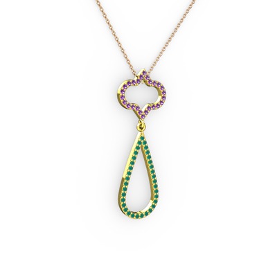 Ametist ve kök zümrüt 18 ayar altın kolye (40 cm gümüş rolo zincir)