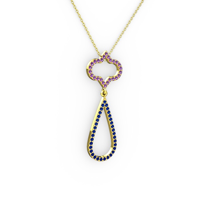 Ametist ve lab safir 925 ayar altın kaplama gümüş kolye (40 cm altın rolo zincir)
