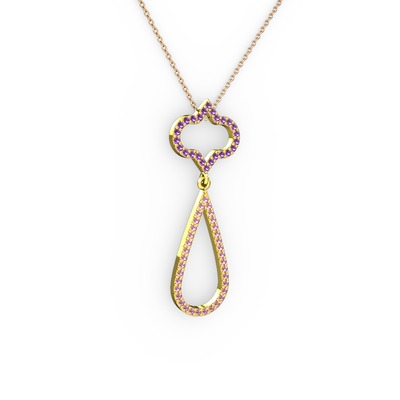 Ametist ve pembe kuvars 8 ayar altın kolye (40 cm gümüş rolo zincir)