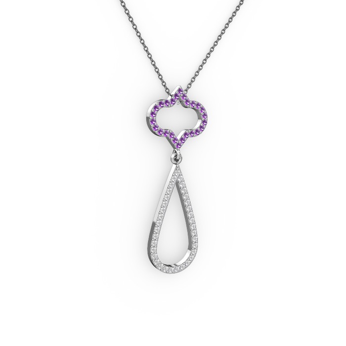 Ametist ve pırlanta 18 ayar beyaz altın kolye (0.324 karat, 40 cm gümüş rolo zincir)