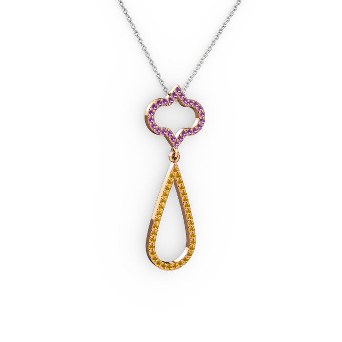 Ametist ve sitrin 18 ayar rose altın kolye (40 cm gümüş rolo zincir)