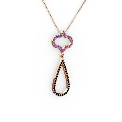 Ametist ve siyah zirkon 18 ayar rose altın kolye (40 cm gümüş rolo zincir)