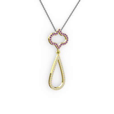 Ametist ve swarovski 8 ayar altın kolye (40 cm gümüş rolo zincir)