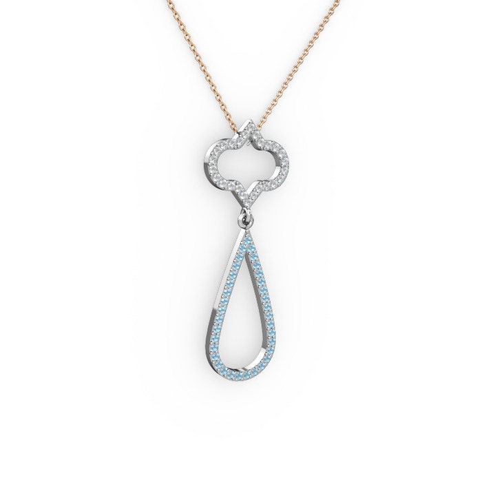Beyaz zirkon ve akuamarin 8 ayar beyaz altın kolye (40 cm rose altın rolo zincir)
