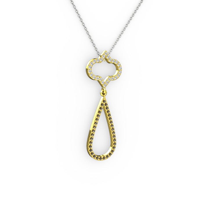Beyaz zirkon ve dumanlı kuvars 925 ayar altın kaplama gümüş kolye (40 cm beyaz altın rolo zincir)