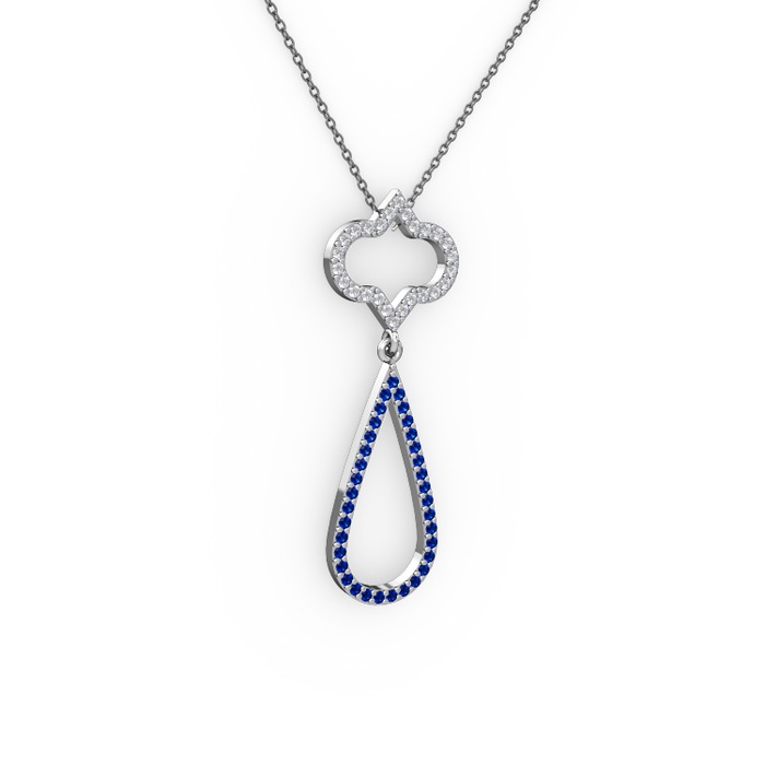 Beyaz zirkon ve lab safir 14 ayar beyaz altın kolye (40 cm gümüş rolo zincir)