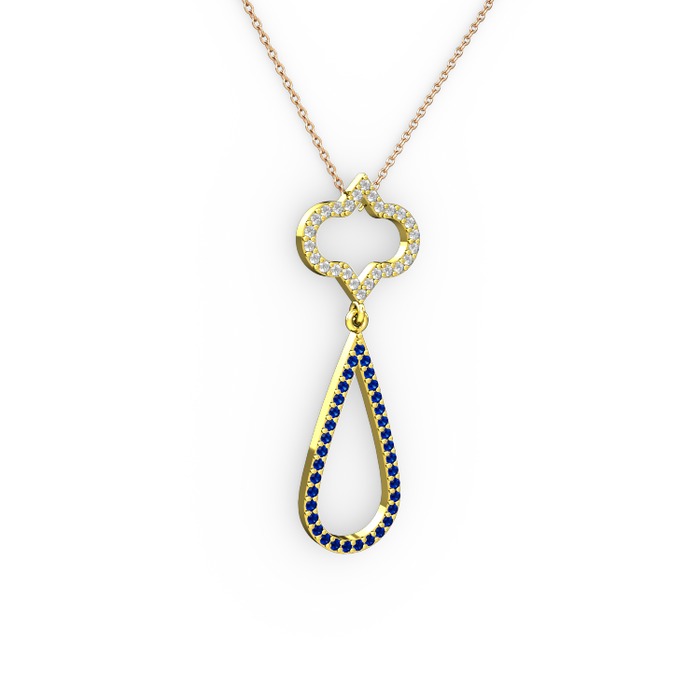 Beyaz zirkon ve lab safir 8 ayar altın kolye (40 cm gümüş rolo zincir)