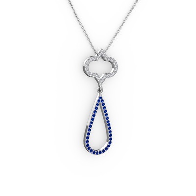 Beyaz zirkon ve lab safir 925 ayar gümüş kolye (40 cm beyaz altın rolo zincir)