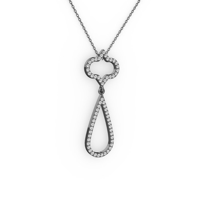 Beyaz zirkon ve pırlanta 925 ayar siyah rodyum kaplama gümüş kolye (0.324 karat, 40 cm gümüş rolo zincir)